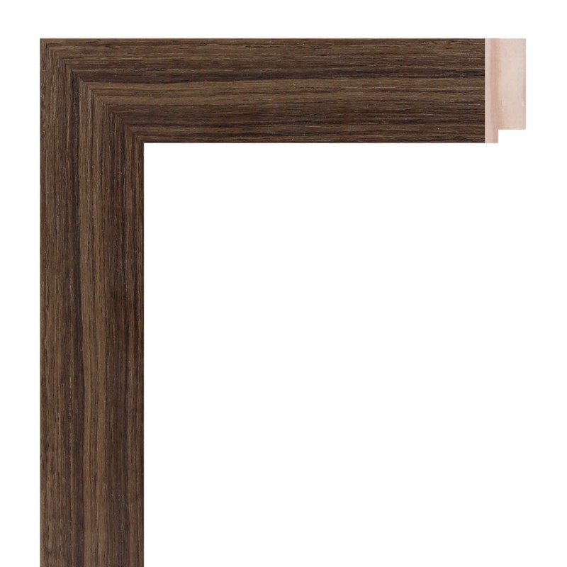 Moulure lisse en bois de pin abouté. Décoré d'un film imitation noyer avec texture bois. Adapté aux cadres de peintures décoratives, photographies, illustrations, etc.