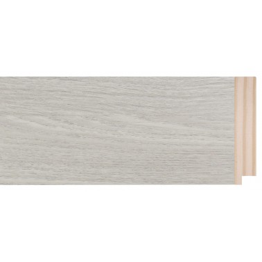 Moulure lisse en bois de pin abouté. Décoré en couleur gris avec un film imitation texture bois. Indiqué pour le cadre de miroirs et cadres de grand format.