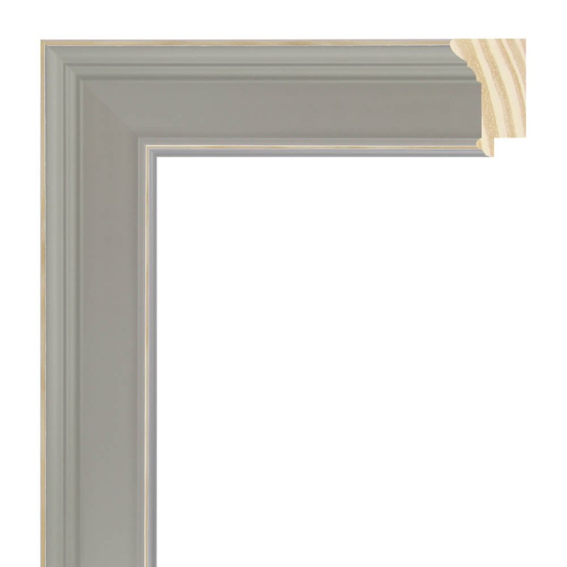 Moulure lisse en bois de pin abouté. décoré en couleur grise avec fond en blanc et bois. adapté aux cadres de peintures décoratives, photographies, illustrations, etc.