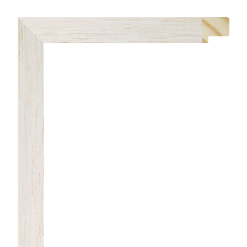 Moulure lisse en bois de pin abouté. décorée en blanc lavage texturé. adapté aux cadres de peintures décoratives, photographies, illustrations, etc.