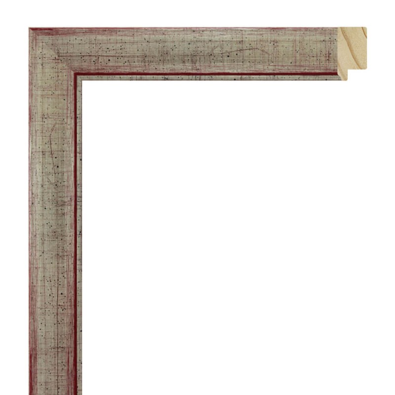 Moulure lisse en bois de pin abouté. décorée en argent chaud avec le fond en rouge. adapté aux cadres de peintures décoratives, photographies, illustrations, etc.