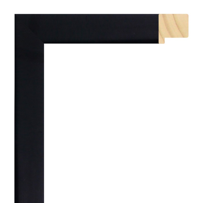 Moulure lisse en bois de pin abouté. décoré laqué en noir mat avec pore fermé. avec une grande galce. indiqué pour les cadres avec une certaine séparation entre le dos et le verre.