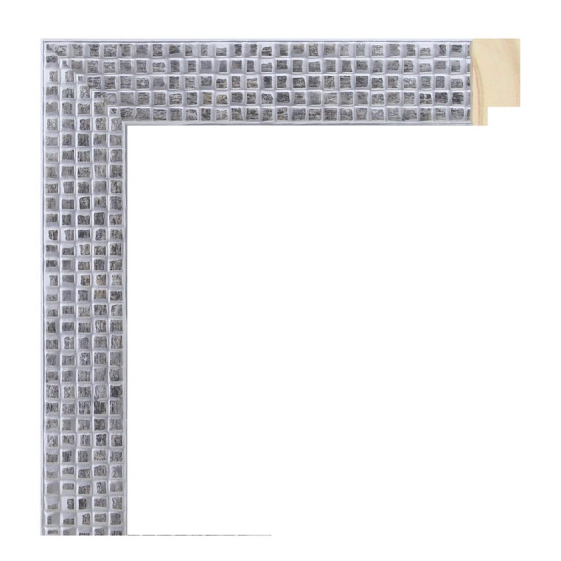Moulure peint en bois de pin abouté. décorée en argent mat avec effet pierre. adapté aux cadres de peintures décoratives, photographies, illustrations, etc.