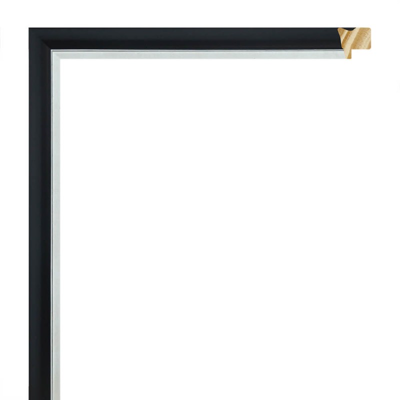 Moulure lisse en bois de pin abouté. laqué noir mat pore fermé avec bord argenté. adapté aux cadres de peintures décoratives, photographies, illustrations, etc.