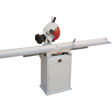 Scie circulaire de précision maximale avec bras millimètres. chariot orientable avec plaque tournante et bloc autocentrique aux angles principaux: 90, 45, 30, 22.30, 15 et 10 degrés, en plus du blocage manuel de tous les angles intermédiaires.