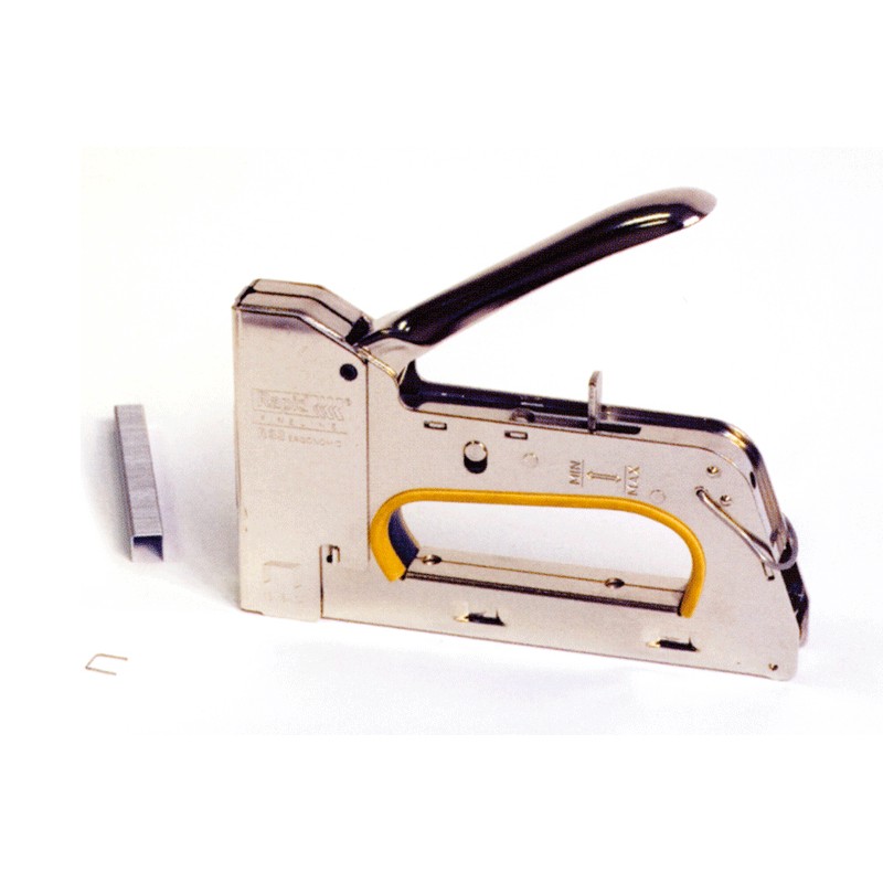 Pince manuelle pour la couture, l'emballage et la fixation professionnelle. oa grapas type 131 de 4, 6, 8, 10, 12 et 14 mm de longueur par une largeur de 10,5 mm.