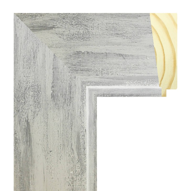 Cornicci liscia realizzata in legno di pino finger. Decorato in bianco lavato e testurizzato. Indicata per la cornice di specchi e quadri di grande formato.