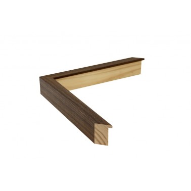 Cornicci liscia realizzata in legno di pino finger. Decorato con film di imitazione di noce con texture di legno. Con il gallo alto. Adatta per inquadrature tipo vetrina.