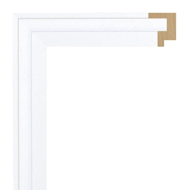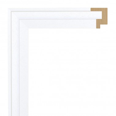 Cornice liscia in legno di ayous. Finitura bianca a poro aperto. Indicata per l’uso come cassa americana, vassoio per tela o cornice con profilo a "L".