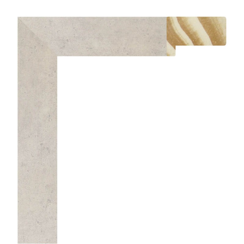 Cornicci liscio in legno di pino finger. Decorato in pietra patinata beige dalla texture grezza. Adatto per cornici tipo vetrina.