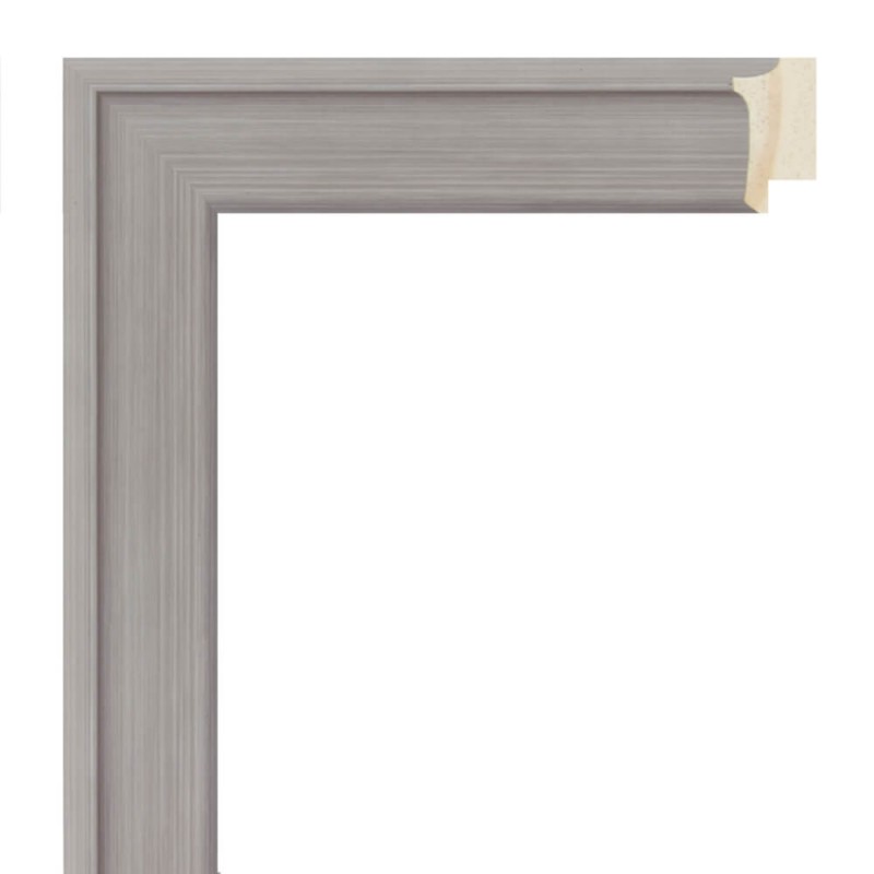 Cornicci liscio in legno di pino finger. Decoro patinato in grigio chiaro. Adatto per incorniciare dipinti decorativi, fotografie, illustrazioni, ecc.
