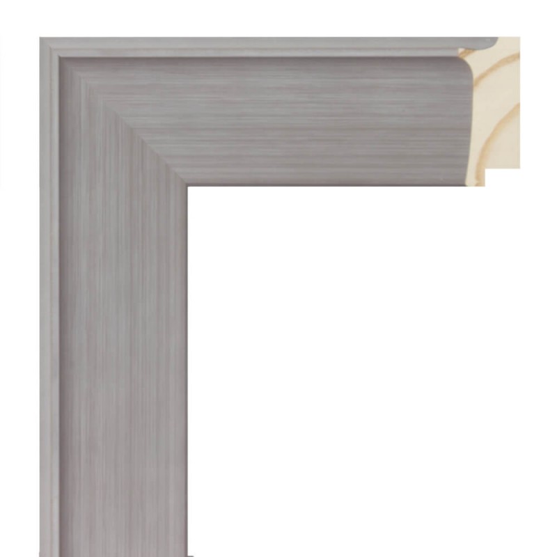 Cornicci liscio in legno di pino finger. Decoro patinato in grigio chiaro. Adatto per incorniciare dipinti decorativi, fotografie, illustrazioni, ecc.