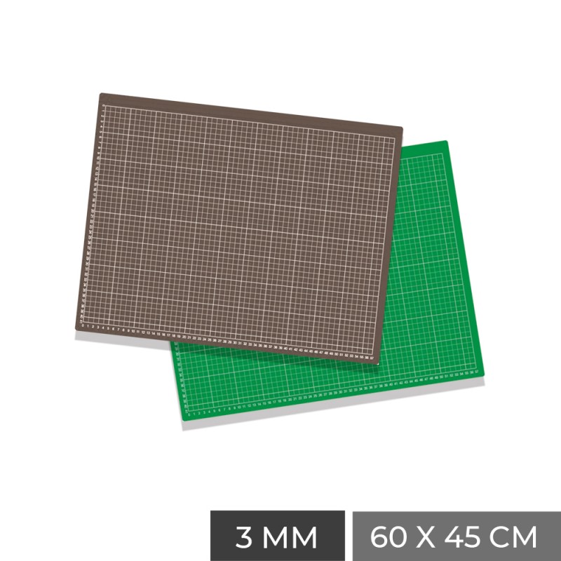 Piastra di plastica di grande resistenza di dimensioni 60x45 cm. utilizzata come base per realizzare tagli con cutter. Realizzata con tre strati di materiale e con uno spessore totale di 3 mm. I due strati superiori sono auto-riparabili, rendendo la linea di taglio quasi invisibile.