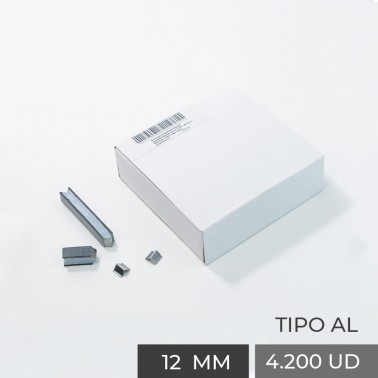 9971512 GRAMPOS TIPO 11 (ALFA) 12 MM (CAIXA 4.200 UNID.) Largura: 11mm Coleção COMPLEMENTOS Grampos para máquinas alfamacchine última geração de 11mm. de largura e 12 mm. de alto para madeira dura. Caixa de 4.200 grampos.