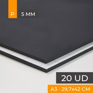 Pode escolher se o foam é adesivo ou não. No caso de procurar cartolina pluma adesiva , deve-se ter em conta que o adesivo está numa das faces, tornando-o ideal para trabalhos mais exigentes como maquetes, apresentações de produto ou eventos.