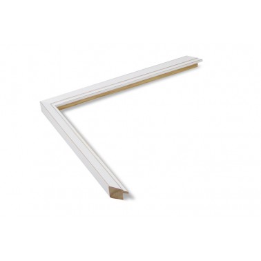 Moldura lisa feita de madeira de pinho. Decorado em cor branco mate com bordos escovados. Adequado para emoldurar imagens decorativas, fotografias, ilustrações, etc.