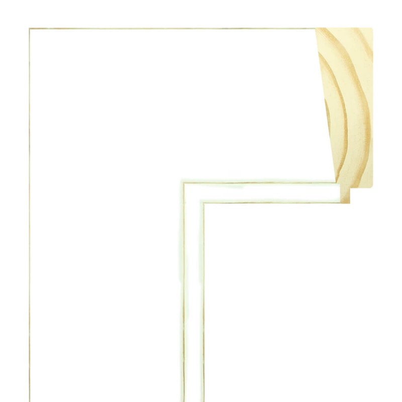 Moldura lisa feita de madeira de pinho. Decorado em cor branco mate com bordos escovados. Adequado para emoldurar espelhos e imagens de grande formato.