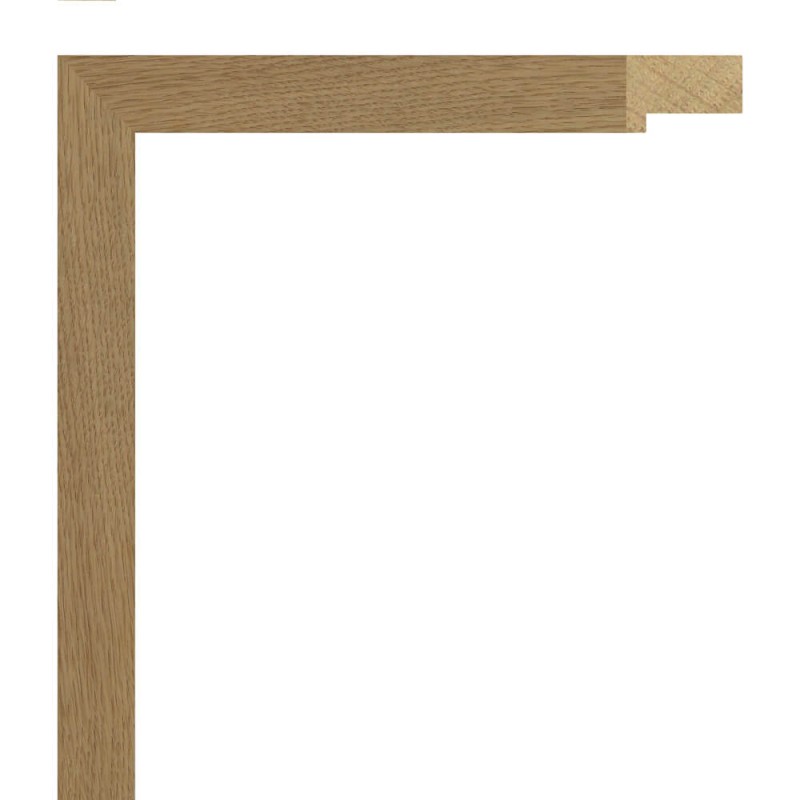 Moldura natural não decorada de madeira de carvalho americano. Sem acabamento. Rebaixo alto. Adequado para emoldurar com alguma separação entre a parte de trás e o vidro.