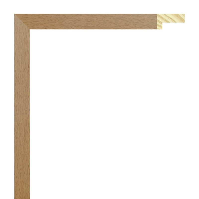 Moldura lisa feita de madeira de pinho. Decorado com uma folha de faia natural. Rebaixo alto. Adequado para emoldurar com alguma separação entre a parte de trás e o vidro.