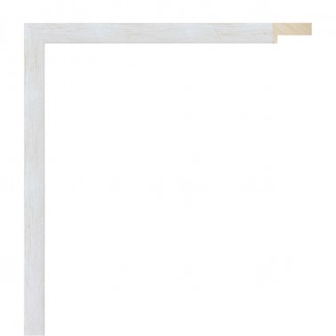 Moldura lisa feita de madeira ayous. Decorado em branco decapagem. Rebaixo alto. Adequado para emoldurar com alguma separação entre a parte de trás e o vidro.