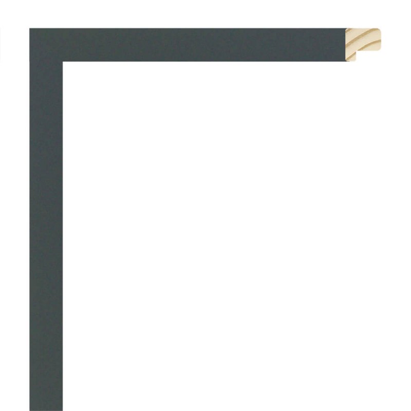 Moldura lisa feita de madeira de pinho. Decorado em cor cinzento escuro lacado texturado. Adequado para emoldurar imagens decorativas, fotografias, ilustrações, etc.