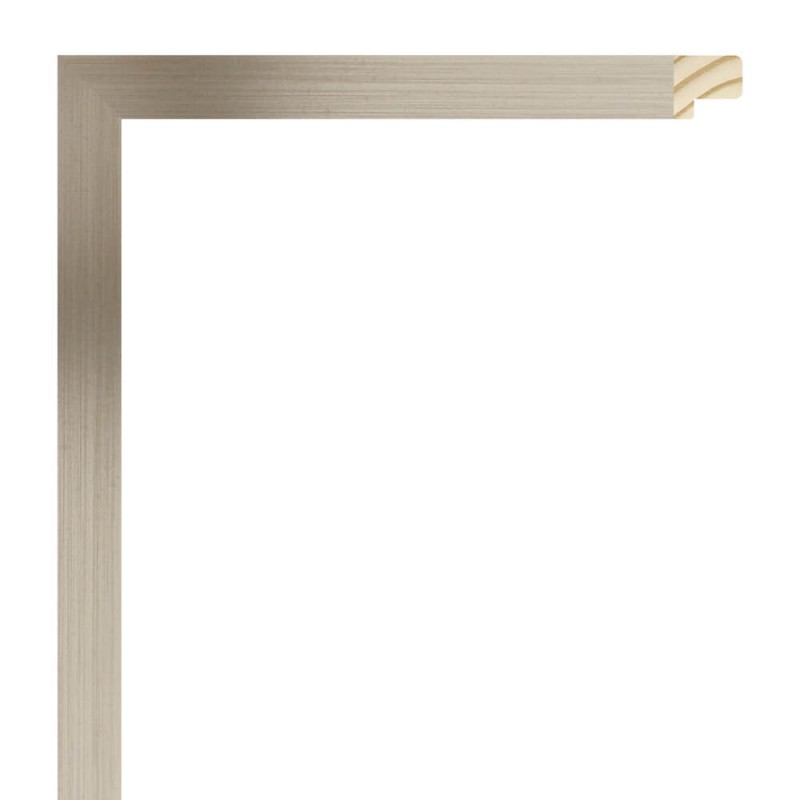 Moldura lisa feita de madeira de pinho. Decorado em prata aço imitação alumínio. Adequado para emoldurar imagens decorativas, fotografias, ilustrações, etc.