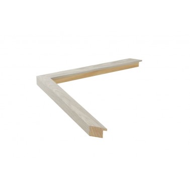Moldura lisa feita de madeira de pinho. Decorado em aço prateado imitando a cor de alumínio. Rebaixo alto. Adequado para emoldurar com alguma separação entre a parte de trás e o vidro.