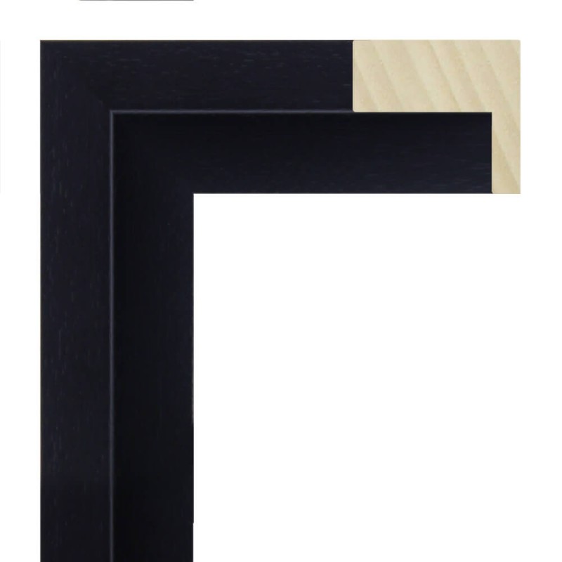 Moldura lisa feita de madeira ayous. Decorado em preto com os poros abertos. Adequado para ser utilizado como caixa americana, gaveta de lona ou moldura "L"