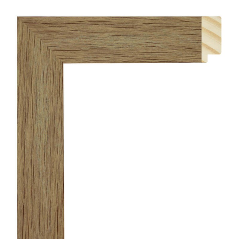 Moldura lisa feita de madeira de pinho. Decorado com imitação de carvalho com textura de madeira. Adequado para emoldurar imagens decorativas, fotografias, ilustrações, etc.