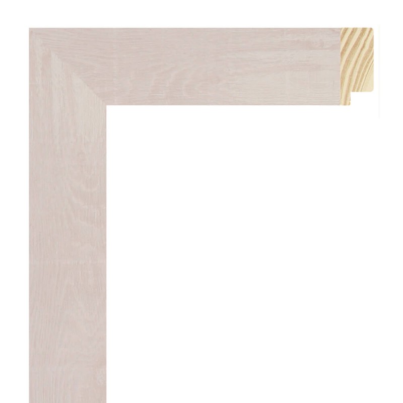 Moldura lisa feita de madeira de pinho. Decorado em maple patinado branco. Adequado para emoldurar imagens decorativas, fotografias, ilustrações, etc.