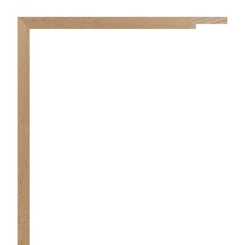 Moldura lisa feita de madeira de faia natural ligeiramente vaporizada. Sem acabamento. Rebaixo alto. Adequado para emoldurar com alguma separação entre a parte de trás e o vidro.