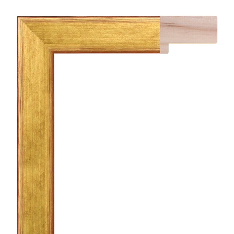 Moldura lisa feita de madeira ayous. Decorado em ouro escovado com fundo vermelho. Adequado para enquadramento de tipo vitrina.
